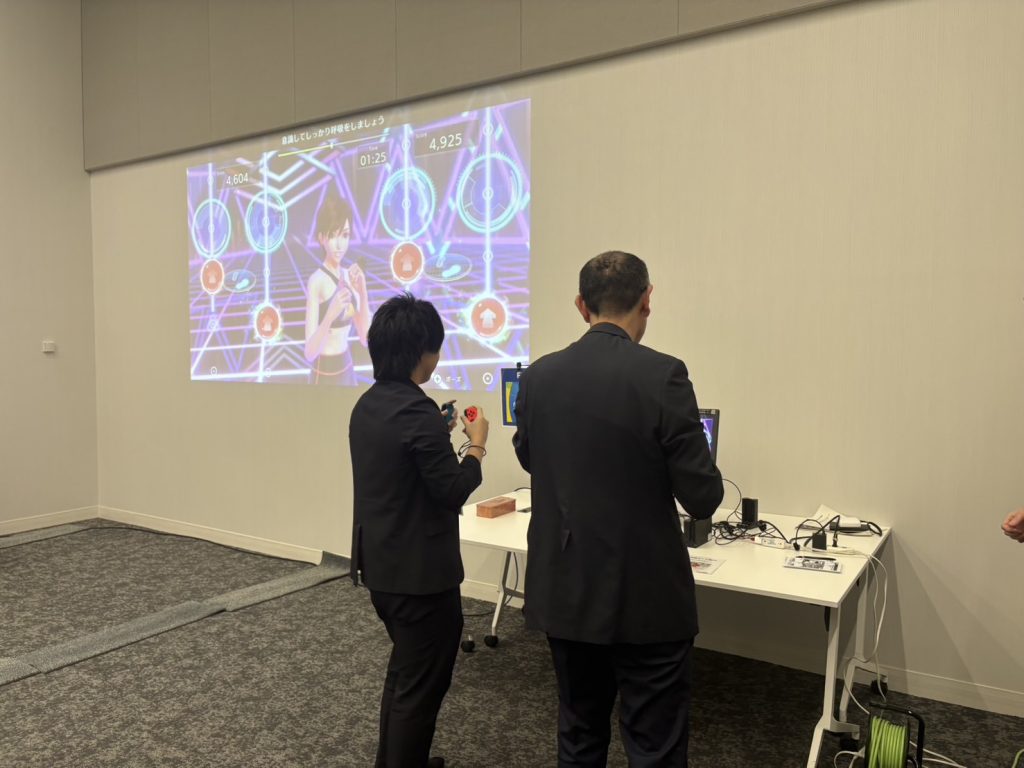 今回体験いただきましたのは「太鼓の達人」と「フィットボクシング」で、運動強度や導入に必要な器具などについてもご確認いただきました。